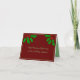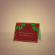 Agrupamento de folhas e bagas ocas sobre fundo vermelho escuro colocou a palco para seu simples mas saboroso cartão de saudação de Natal. Personalize com seu nome para simplificar o processo de envio de cartão.