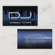 Um modelo legal do cartão de negócios do DJ com um design impressionante de lasers azuis do equalizador no céu nocturno combinou com as notas pretas da música do luminoso em um fundo escuro. O cartão perfeito para um DJ ou um produtor profissional.