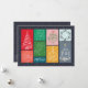 Este vibrante cartão postal de Natal é uma celebração da alegria festiva e da criatividade. A frente do cartão postal é adornada com uma paleta de cores cativante, apresentando várias saudações de "Feliz Natal" em uma variedade de tons animados. O design divertido certamente evocará uma sensação de calor e felicidade.