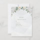 Esta placa RSVP tem um estilo suave e elegante com uma paleta de cores pastel dominada por tons de verde e branco. No topo, há um belo arranjo de flores brancas e creme, incluindo rosas e outros sangramentos delicados, intercalados com folhas verdes. Os nomes são exibidos no centro com na moda, letra cursiva, com ilustração de anéis de casamento entrelaçados abaixo dos nomes. A design é sofisticada e romântica, adequada para uma celebração de casamento. F002
