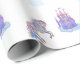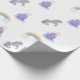 Um castelo de conto de fadas branco, rosa e roxo, com um unicórnio e um belo arco-íris. Espero que este papel de embrulho adicione um toque de magia à sua celebração!