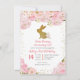 Alguns Bunnies estão fazendo um convite de aniversário. Convite Floral A Coelhinho. Convite de aniversário de páscoa, com cor floral e coelho rosa. Perfeito para o convite de aniversário do seu filho