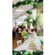 Um convite para comemorar o primeiro aniversario de um menino. Uma selva, um fundo da floresta tropical com animais de safari bebê. Macaco, elefante, leão, zebra e girafa. Personalize e adicione um nome e detalhes da parte. 1 folha = 1 convite impresso borda a borda.