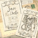 Um Conto do Dragão Amor 2 salve a data Convite Apresentando nossa Vintage "A Tale of Dragon Love", Convocação Mística Tarot, Convocação Salvar a Data. O tema é místico e romântico, com dois dragões apaixonados que lembram o cartão tarot "Os Amantes". Esse convite é perfeito para casamentos com tema místico, para tema de casamento vintage, para entusiastas tarot e para aqueles que adoram dragões. Os monogramas adicionam ao estilo do convite. O design apresenta um esquema simples de cor de sepia, dando-lhe um visual elegante, com designs tanto na frente como no verso. A redação é perfeitamente editável. Você pode alterar tamanho, cor, fonte, posição na página.