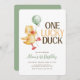 Um Pato Sortudo - Convite ao primeiro aniversario Celebre seu dia especial com este adorável convite de primeiro aniversario do "Pato Sortudo"! Com um charmoso pato aquoso segurando um balão e uma tipografia de na moda, esta design é perfeita para uma celebração divertida e encantadora.