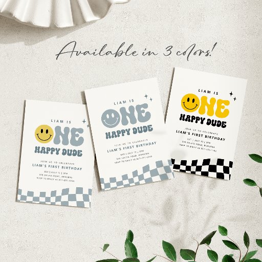 Celebre o dia especial de sua cara com este convite de aniversário do Blue ONE Happy Dude, apresentando um sorriso alegre emoji e um design moderno. Perfeito para uma festa de aniversário divertida e na moda!