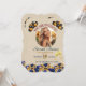 Um convite de aniversário adequado para todos em cores brilhantes, como o ouro, que indica sofisticação e luxo, e azul escuro, que indica celebração e distinção.