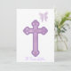 Um Convite de Batismo para uma Nova Vida! Uma Transformação Espiritual Celestial. Cruz roxa de Jesus liderando a santidade da ocasião. Uma borboleta roxa simbolizando a transformação da alma. Personalize para uma entrada dourada neste evento especial. Personalize.