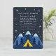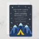 Celebre o dia especial do seu docinho com este design de aniversário de um primeiro aniversario de Camper Feliz. A design apresenta um céu noturno estrelado com montanhas e uma tenda amarela. O inverso é um padrão de estrelas. Você pode personalizar isso ainda mais clicando no botão "PERSONALIZAR".