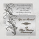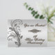 Um design de imagens Digitalbcon com um tema de cor prateada com uma variedade de imagens personalizadas, formas, padrões, estilos e fontes neste cartão de convite de RSVP de aniversário de casamento prateado único. Este cartão também vem com um design correspondente no verso com letras de texto personalizadas para se adequar à sua ocasião especial.
