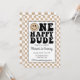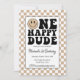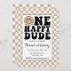 Um convite de festas de primeiro aniversario Feliz. Fundo com verificação do tom e sotaques pretos