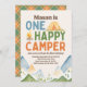 Um convite de aniversário de camper feliz para a festa de aniversário do rapaz ou da menina acampando! © 2025 Tea Olive Co.