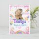 Foto personalizada do partido mágico Convite para o 4º Aniversário Anuncie uma celebração encantadora do 4º Aniversário da sua filha com os nossos Convites de Aniversário do Partido Mágico. Esses convites de festas personalizados fazem parte da Coleção de Partido Mágico de PingKarma, projetada para trazer arco-íris, unicórnios e alegria cintilante a um dia especial. Apresentando a foto da criança de aniversário e coordenando elementos brancos como unicórnios, estrelas de brilho e arco-íris pastel, estes convites complementam lindamente toda a coleção — de pratos a banners e chapéus de festas. Perfeito por criar uma experiência mágica, de uma espécie de festa que todos vão lembrar! Conclua a consulta visitando pkcd.comprar para comprar kits de balão, streers e provedores de partido coordenados por cores da Coleção de Partido Unicórn. Transforme sua celebração em uma terra maravilhosa mágica!