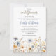 Um convite para chá de fraldas para uma menina de flor silvestre, flores de cor-d-água azul e amarela