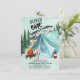 Acampamento no primeiro aniversario - perfeito para um churrasco de quintal, piquenique ou festa de aniversário ao ar livre. Esta design de aquarela tem uma montanha e uma paisagem florestal com tenda, fogueira e fungos. O título diz "[name] is one Happy Camper" (nome] é uma camper feliz) e o texto restante do convite é totalmente editável.