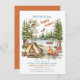 Um convite para primeiros aniversarios de Camper Boys Feliz Convite para Camping-temático Convite para primeiro aniversario - perfeito para um churrasco, piquenique ou festa de aniversário ao ar livre. Esta design de aquarela apresenta um belo lago e paisagem de montanha com uma tenda, uma fogueira e vários itens de acampamento. Todo texto é editável.