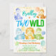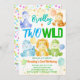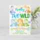 Dois queridos e bonitos dinossauros brancos, loucos, modelo de convite para segundo aniversário.