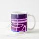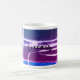 Um abstrato bonitinho, com cores de blues e de púrpura, numa caneca branca clássica, com texto a ler "SERENE~CALM~PEACE"