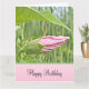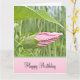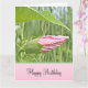 Um bonito botão de flor rosa traz desejos para um "Parabéns". Dentro o verso tem desejos de felicidade e amor. O cartão perfeito para aquela pessoa especial.