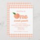 Um Pêssego Doce! Peach convite de primeiro aniversário com pêssegos e pêssego gingham.