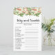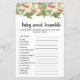 um tema de pêssego doce apresenta um pessegueiro bonitinho, um cartão de palavra para chá de fraldas As palavras neste cartão estão todas relacionadas a bebês e foram embaralhadas. Os hóspedes vão competir para ver quem pode desembaraçá-los todos primeiro! CHAVE DE RESPOSTA: 1. assento do carro; 2. leite 3. caneta para tocar 4. pacificador O quinto ponto é uma cadeira de balanço de fralda. 7. berçário 8. baby monitor; 9. swaddle 10. Fórmula. 11. Pato de borracha 12. Rolha. 13. monitor. 14. 15. Termômetro.