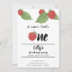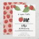 "um doce pequeno" aniversário de framboesa Convite com framboesas cor-de-rosa bonitinhas. Perfeito para uma festa de aniversário de verão de frutado rosa para o seu pequeno.