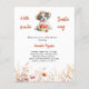 Um fundo branco chic. Decorado com um filhote fofo, cão vestindo um canuto e comendo melancia. Beige, creme, flores silvestres rosa. Personalize e adicione o nome da mãe a ser e os detalhes da festa. Texto: Um Docinho está a caminho. 1 folha = 1 convite impresso de borda a borda.