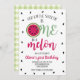 Um em um Melon Watermelon, primeiro convite de aniversário com melão verde.