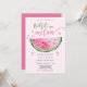 Celebre seu filho de um ano com uma melancia no aniversário temido! Excelente para festas de primeiro aniversario para o seu bebê de verão. Este divertido convite de aniversário melônico apresenta uma melancia de aquarela e um roteiro "Um em melão". Personalize com suas informações ou clique em "Clique para personalizar mais" para editar estilos de fonte, tamanho e cores.