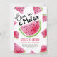O padrão de convite para melancias de cor branca e colorida foi desenhado à mão e pintado por mim, Valarie. Apenas disponível nas minhas compras. Faça-o por si próprio editando o texto. Padrão de melancia de aquarela branca e branca com fontes giras divertidas! Perfeito para festas de aniversário de verão.