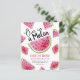 O padrão de convite para melancias de cor branca e colorida foi desenhado à mão e pintado por mim, Valarie. Apenas disponível nas minhas compras. Faça-o por si próprio editando o texto. Padrão de melancia de aquarela branca e branca com fontes giras divertidas! Perfeito para festas de aniversário de verão.