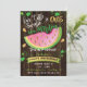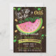 Seu docinho está girando um? Então este convite é para você! Apresenta uma fatia de melancia suculenta com uma picada com cipós e sementes em um fundo de madeira escura rústica. Acentos de folha de ouro falsos. Excelente para uma garotinha ou um menino virando um. Ilustração desenhada à mão pela McBooboos Precisa de ajuda com o layout, basta enviar um e-mail para tkatz@me.com