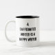 Aperfeiçoe para todo o escritório do ` s do escritor. Um escritor de Caffeinated é um escritor feliz é indicado em ambos os lados desta caneca.