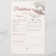 "Adicione um pouco de diversão ao seu chá de fraldas com esta 'Pequena Pérola Sob o Mar' Adivinha Quantos cartões de jogo. Com tons suaves de bege, pérolas em ximersão e conchas delicadas, este jogo inspirado no oceano terá seus convidados adivinhando o número de pérolas dentro no pote enquanto celebra a chegada de seu pequeno tesouro."