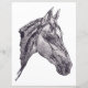 Uma imagem artística em tons de cinza, em estilo gráfico, que retrata um retrato da cabeça de um cavalo. Só uma beleza equina.