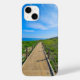 uma longa e sinuosa trilha em Point Dume em uma paisagem maravilhosa com plantas verdes e água oceânica exuberantes na Califórnia em Malibu.