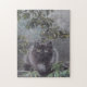 Quebra-cabeça apresentando um lugar silencioso pela artista Michaeline McDonald, de um gatinho preto fofo olhando para uma teia de aranha-do-rio.