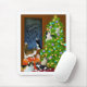 Uma pintura detalhada por Carolyn McFann de uma família dos gatos que jogam em torno e em uma árvore de Natal durante os feriados. Amplie este design para ver todos os muitos detalhes.