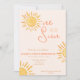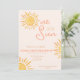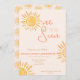 Este simples design boho apresenta diferentes tons amarelos, laranja e pêssego para o perfeito aniversário de "Um no Sol".