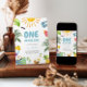 Divirta-se com nosso Convite de festas editável de Piscina, apresentando uma variedade divertida de itens de piscina e a frase caprichosa 'UM no Sol' em uma fonte azul vibrante!