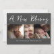 Um cartão de anúncio de nascimento para o feriado cinza com uma nova benção. Desenho lindo com texto moderno e elegante em branco Uma Nova Bênção, colagem de 3 fotos, Feliz Natal da família nome em cinza carvão moderno. O verso apresenta texto elegante e alegre & abençoado, e uma curta mensagem em preto sobre branco. Personalize com seu texto e fotos. Todo o texto, fontes e cores são personalizáveis. Convidamos você a visitar nossa loja, Austen & Grace para produtos e mais que combinem. Por favor, entre em contato conosco se precisar de ajuda.