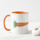 Esta caneca festiva divertida mostra um desenho de cenoura. Alguém se meteu na cenoura deixando a palavra rena gravada na carne do vegetal. Este é um presente de Natal para a Reindeer. O design é mostrado em uma caneca de estilo cor laranja e branca, mas também está disponível em outros estilos e cores de canecas. Seria um belo presente de Natal.