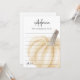 O "Um Cartão de Conselheiro para o Chá de fraldas de outono de Uma Pequena Pumpkin" é um complemento perfeito para a sua celebração temerária. Projetados com cores encantadoras do outono e ilustrações lúdicas de abóbora, estas cartas convidam convidados a compartilhar suas melhores dicas de parentalidade e desejos sinceros para os novos pais. Uma maravilhosa guarnição, esta carta será apreciada pela família enquanto embarca na sua nova viagem com a sua pequena abóbora.