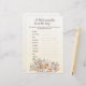 Faça o chá de fraldas se divertir com este doce Jogo de Bebê! Este encantador tema "A Little Pumpkin is on the Way" apresenta uma ilustração feita com uma aquarela pintada manualmente de um rústico transbordamento floral com abóboras, pampas e eucalipto. A design de chá de fraldas branca combina a sensação acolhedora do outono com uma estética boho-chica moderna. É perfeito para uma comemoração do outono. A paleta de cores macia e cremosa e as fontes elegantes criam uma sensação quente e convidativa que é sofisticada e doce. Adicione este jogo adorável ao seu chá de fraldas por uma experiência inesquecível e divertida! CHAVE DE RESPOSTA: PEDARI → FRALDA, ROLLSTER → STROLLER, RBIC → CRIB, TLETOB → FRASCO, KELNATB → BLANKET, IFCAPIER → PACIFIER, TRONIMO → MONITOR, SUNRERY → NURSERY, SIBB → BIBS, RATO TRALE