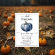 С comemorar a chegada do seu bebê com nossa coleção de Chás de fraldas Blue Pumpkin Watercolor Boho. Este encantador conjunto apresenta ilustrações de aquarela macia de abóboras azuis, folhagem delicada e sotaques inspirados em boho, perfeitas para um na moda e chá de fraldas único. Os tons azuis calmantes combinados com elementos naturais da terra criam uma atmosfera acolhedora e convidativa. Ideal para um evento com tema de outono ou estilo boêmico, estes produtos irão adicionar um toque de elegância e capricho à sua celebração, fazer-a uma experiência inesquecível para si e para os seus convidados.