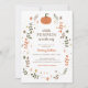 A Little Pumpkin White Fall Chá de fraldas Invitation apresenta uma colorido borda das folhas de outono sobre um fundo marrom com um tratamento elegante e elegante do tipo script. Personalize-o com os detalhes do evento. Um belo convite, perfeito para o seu evento!