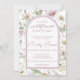 Celebre a chegada da sua doce menina com este convite de chá de fraldas floral encantador. Apresentando uma bela mistura de cor-de-rosa macio, amarelo ensolarado e tons verdes refrescantes, esta design apresenta flores selvagens delicadas que simbolizam novos começos e o florescimento da vida. Perfeito para um chá inspirado na natureza, este convite 5x7 captura a essência do primavera e a alegria de acolher um pouco de flor silvestre no mundo. Personalize-o com os detalhes do seu chá para um toque pessoal que fará com que os seus convidados se sintam ainda mais entusiasmados para comemorar!