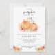 "Uma abóbora está a caminho!" Chá de fraldas com um belo design de abóbora de outono.