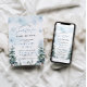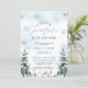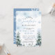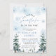 Um pequeno floco de neve está no caminho convite para o Chá de fraldas com flocos de neve azuis e pinheiros, e boho design.