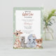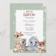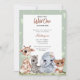 Este belo convite para chás de fraldas apresenta uma adorável coleção de lindos bichos de aquarela. O título diz: "Nosso pequeno selvagem está a caminho!". Personalize com seus próprios detalhes exclusivos.